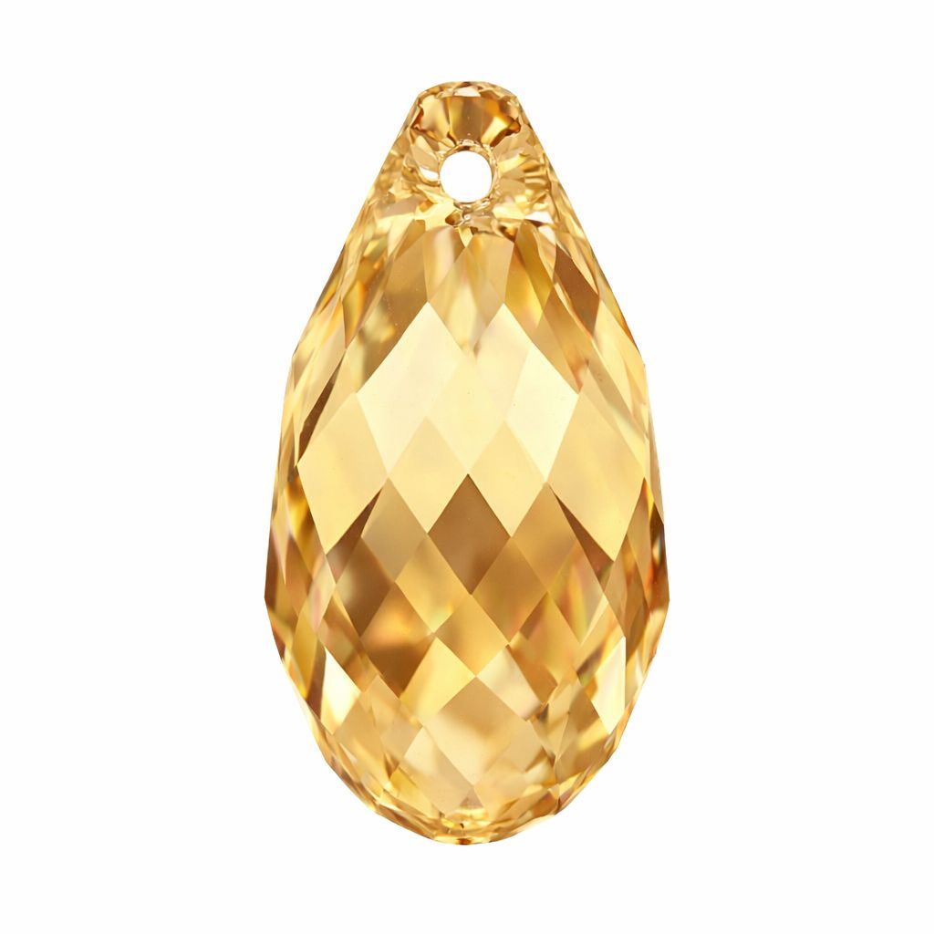 Goutte en cristal à la forme facettée classique. La pierre mesure 17,0 x 8,5 mm et présente la couleur Crystal Golden Shadow avec une nuance dorée sur une base transparente. Le modèle ne possède pas de trou confirmé. Utilisée comme élément décoratif en bijouterie et en pendentifs.