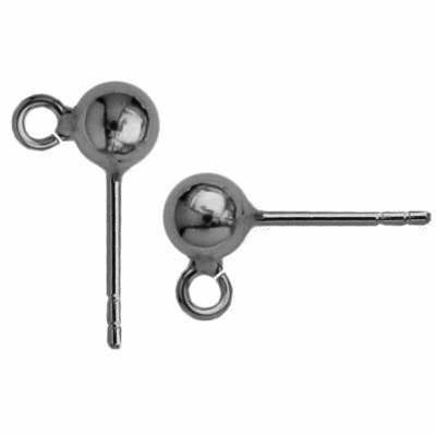 Boucle d'oreille puce avec une boule de 5 mm et un anneau ouvert pour suspendre, argent AG 925, CON 1V STW 5x10 mm - AG 925