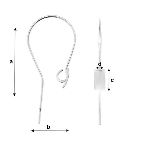 a=26,00 mm; b=12,00 mm; c=5,00 mm, d=3,00 mm; en argent sterling (AG-925),