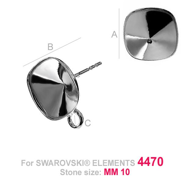 Boucle d'oreille - base pour Coussin Carré, argent AG 925
