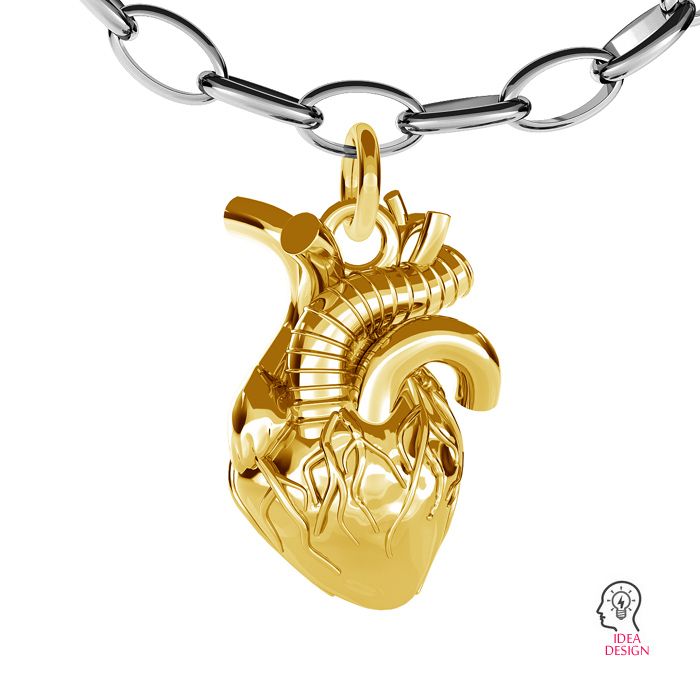 Pendentif - coeur anatomique fonte, argent AG 925