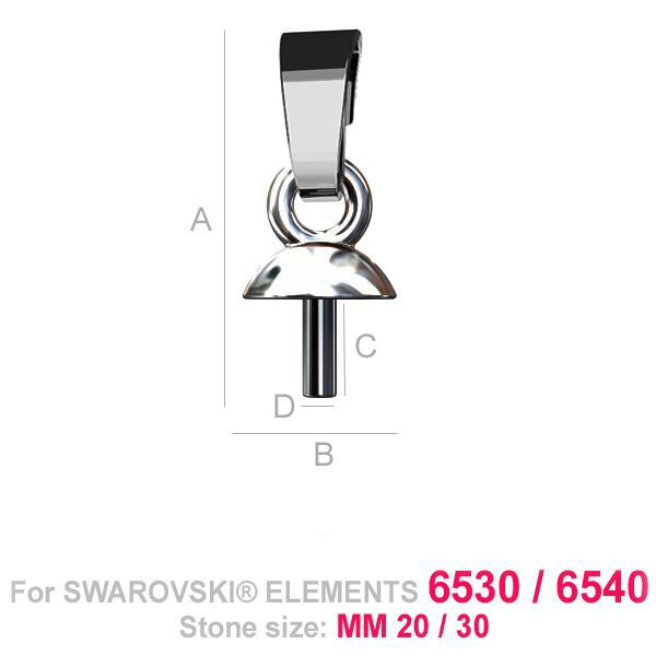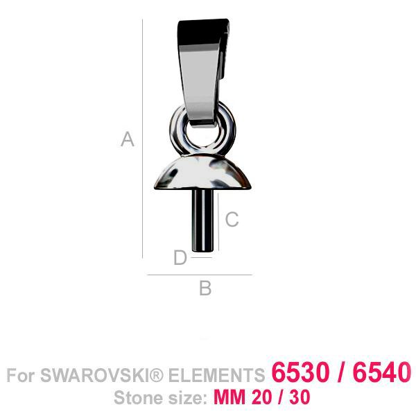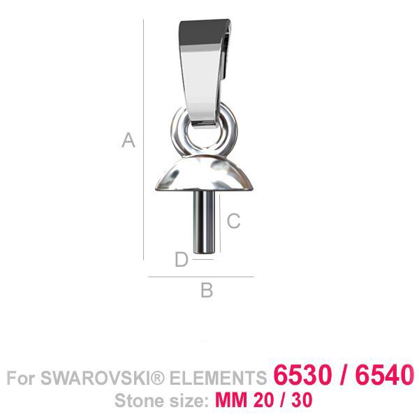 A=13,50 mm; B=4,50 mm; C=3,00 mm; D=1,00 mm, en argent sterling (AG-925)