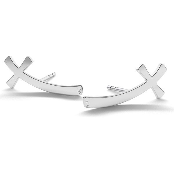Boucle d'oreille clou - croix (L+R), argent AG 925