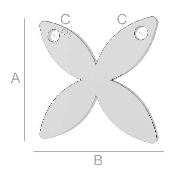 A=11,60 mm; B=11,60 mm; C=1,20 mm, en argent sterling (AG-925)