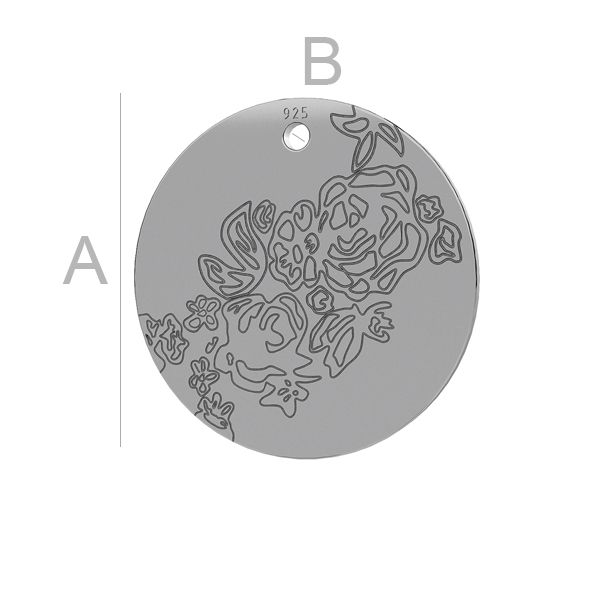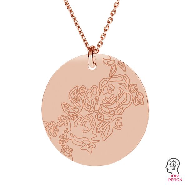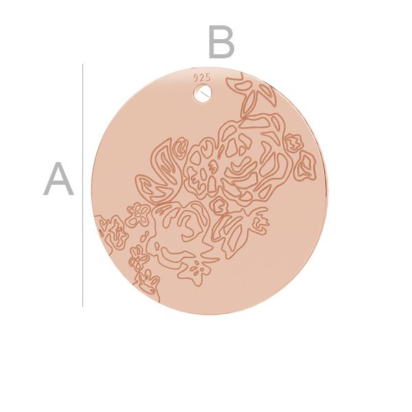 Pendentif - plaque ronde - rose, argent AG 925