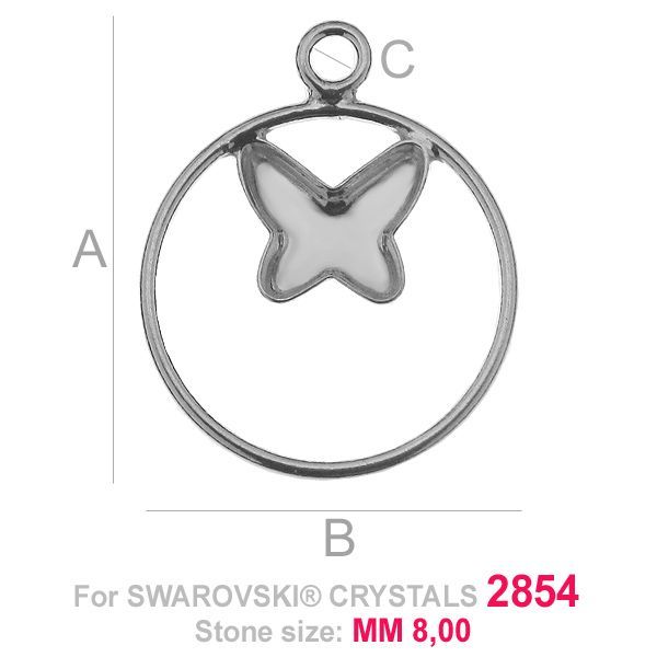 Pendentif - base pour Butterfly Flat Back en cercle 2854 8 MM, argent 925