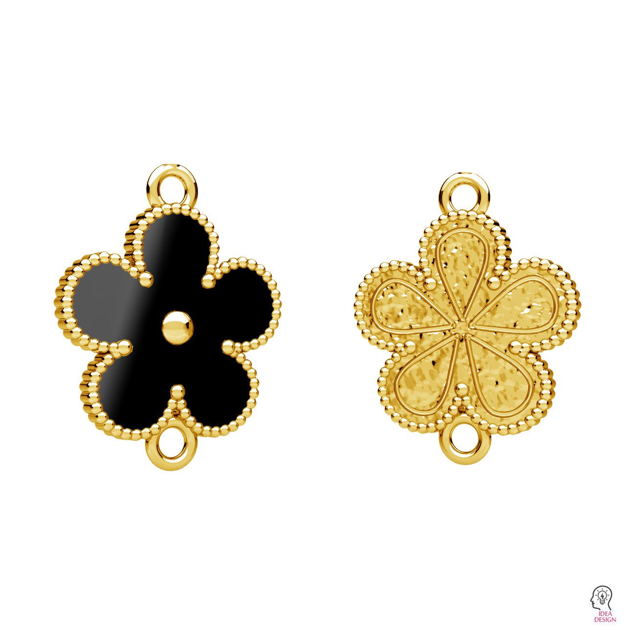 Element covered with two layers of 18-carat gold: primer and finish coat, which makes gold plating much more durable. Additional, third layer consists of technology based solely on noble metals. The additional layer of galvanic coating has been developed by our specialists and protects the product from oxidation and discoloration, while maintaining hypoallergenic properties. The coating thickness is 0.5μm, of which gold constitutes 0.4 μm..