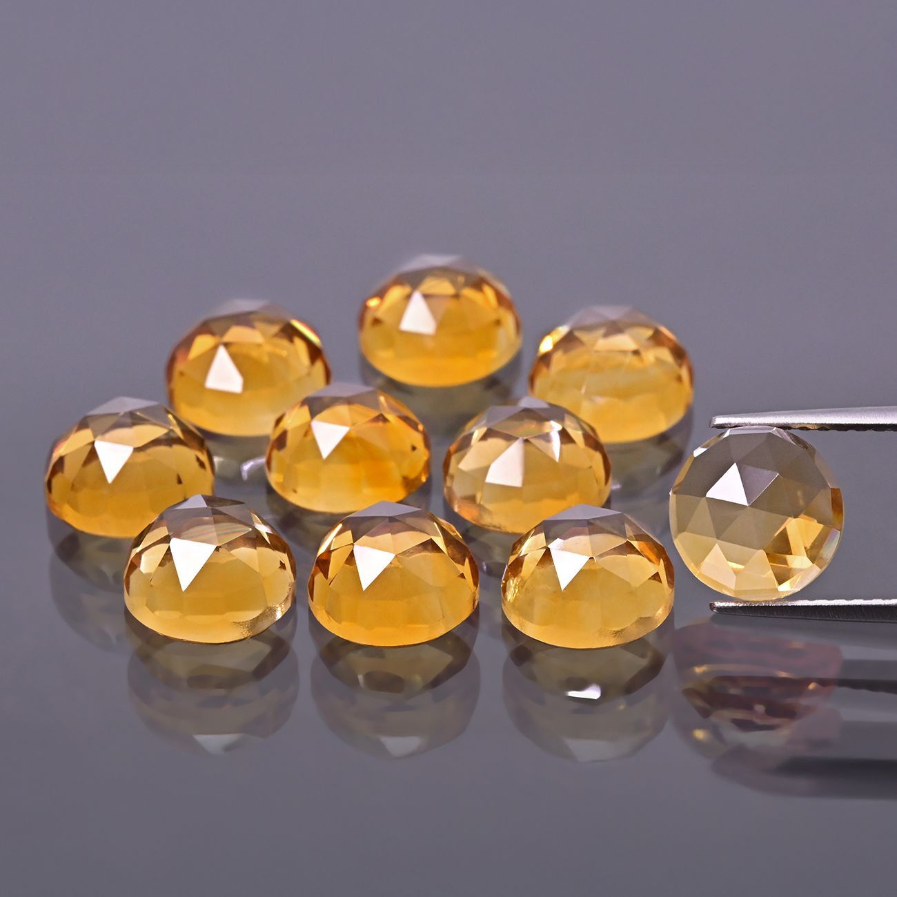 Pierre ronde, taille rose - Citrine A 6 mm. Citrine de haute qualité avec une couleur chaude et intense, ROSE CUT avec une base plate, parfait pour des créations de bijoux élégantes.