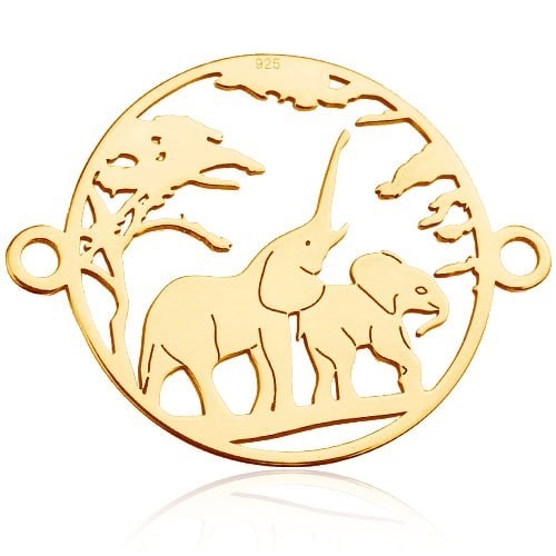 Connecteur ajouré - éléphants africains, argent AG 925