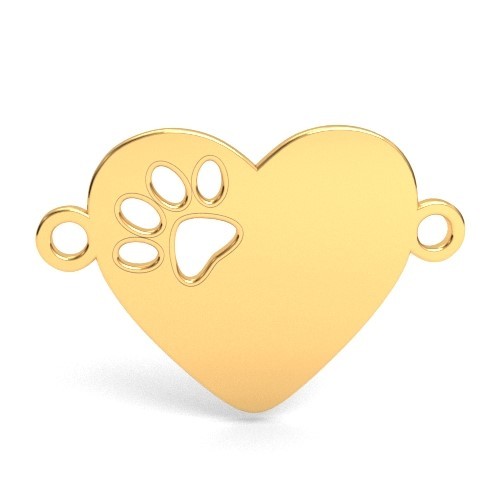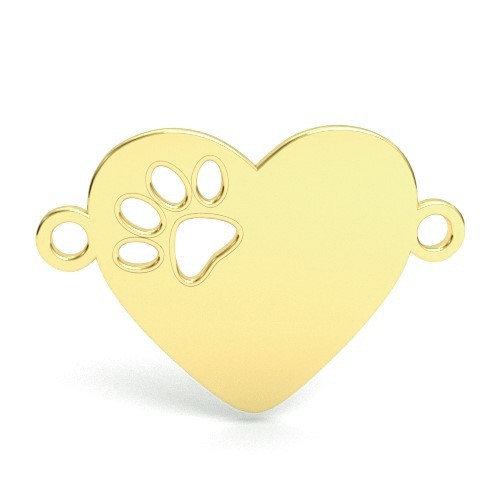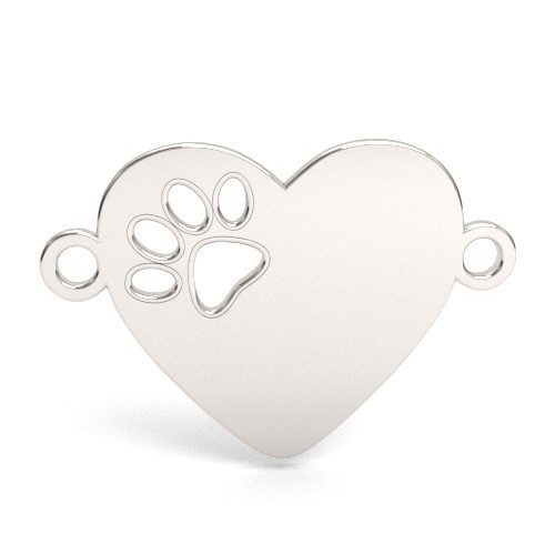 Connecteur pendentif - cœur avec patte de chien, argent AG 925