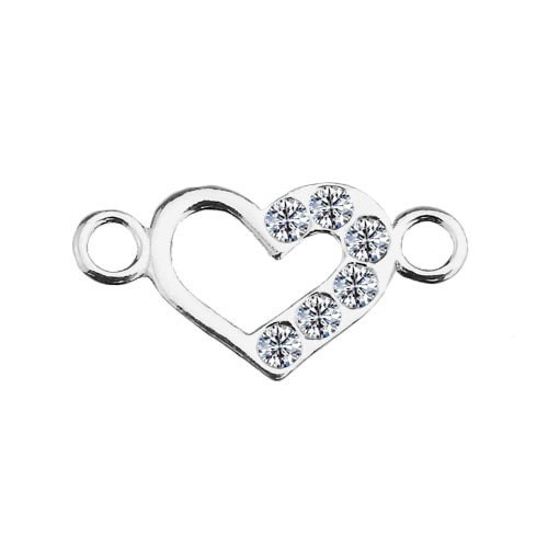 Pendentif connecteur - petit cœur avec pierres, argent AG 925