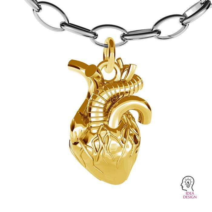 Le cœur anatomique est un motif joaillier expressif au caractère universel. Le pendentif en laiton symbolise la vie et les émotions. Il convient à la bijouterie féminine et masculine et peut être utilisé pour colliers, bracelets, boucles d’oreilles pendantes et charms.